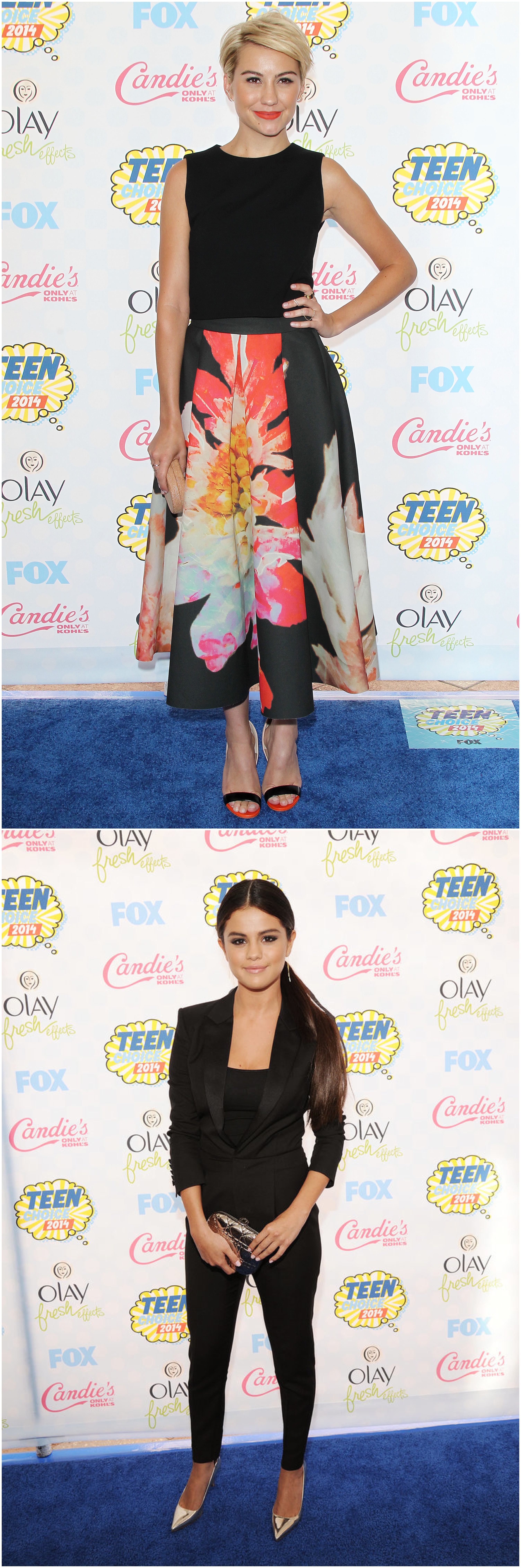 Well its summer so why not have a little fun with your outfits? The stars at 2014 Teen Choice Awards certainly did with an array of colourful crops and shorts. My favourites are featured, starting with the winner of the Choice Female Country Artist award Taylor Swift (above), who stole the show in a lime green tweed oscar cropped bustier with matching A-line skirt by Novis. Loving this? Try this alternative at Top Shop.