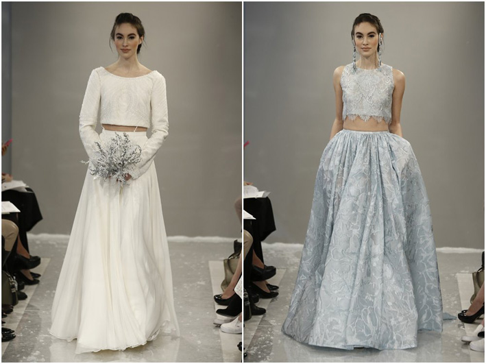 Bridal Fashion Week revealed some great trends for Fall 2015 and last time we revealed the gorgeous backs on dresses that could be had. Today’s post is all about the wedding separate designs that brides should opt for, should they wish to show off their midriffs. As you may know this trend has been all the rage this year see previous post here but it continues into 2015 with the likes of Reem Acra and THEIA to name just a few catering to every bride looking for boho to modern or subtle to look-at-me styles.
