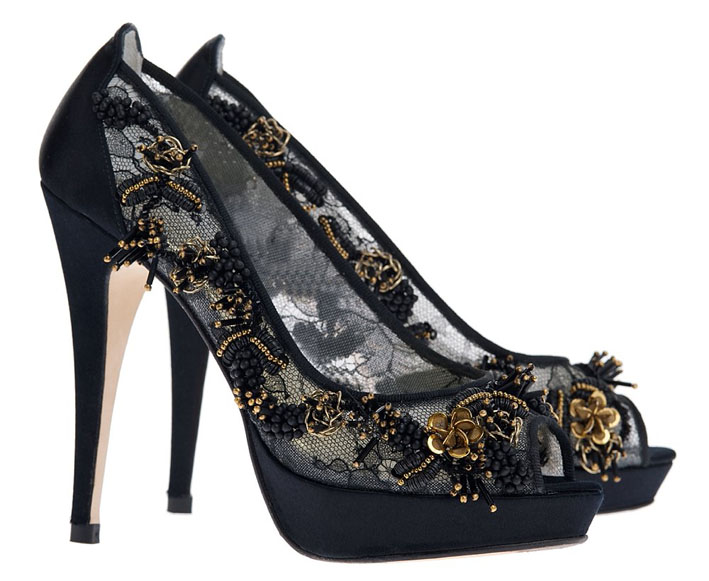 Well known for her bridal shoes, demand has finally forced this little lady to bring out an an inspirational ready-to-wear collection this season, incorporating her signature influences of Art Deco, Orientalism and the French Bohemian era. This collection is luxurious and opulent and the shoe above and below is my name sake ‘Michelle’, a stunning and elegant lace peep toe platform shoe fit for any occasion.