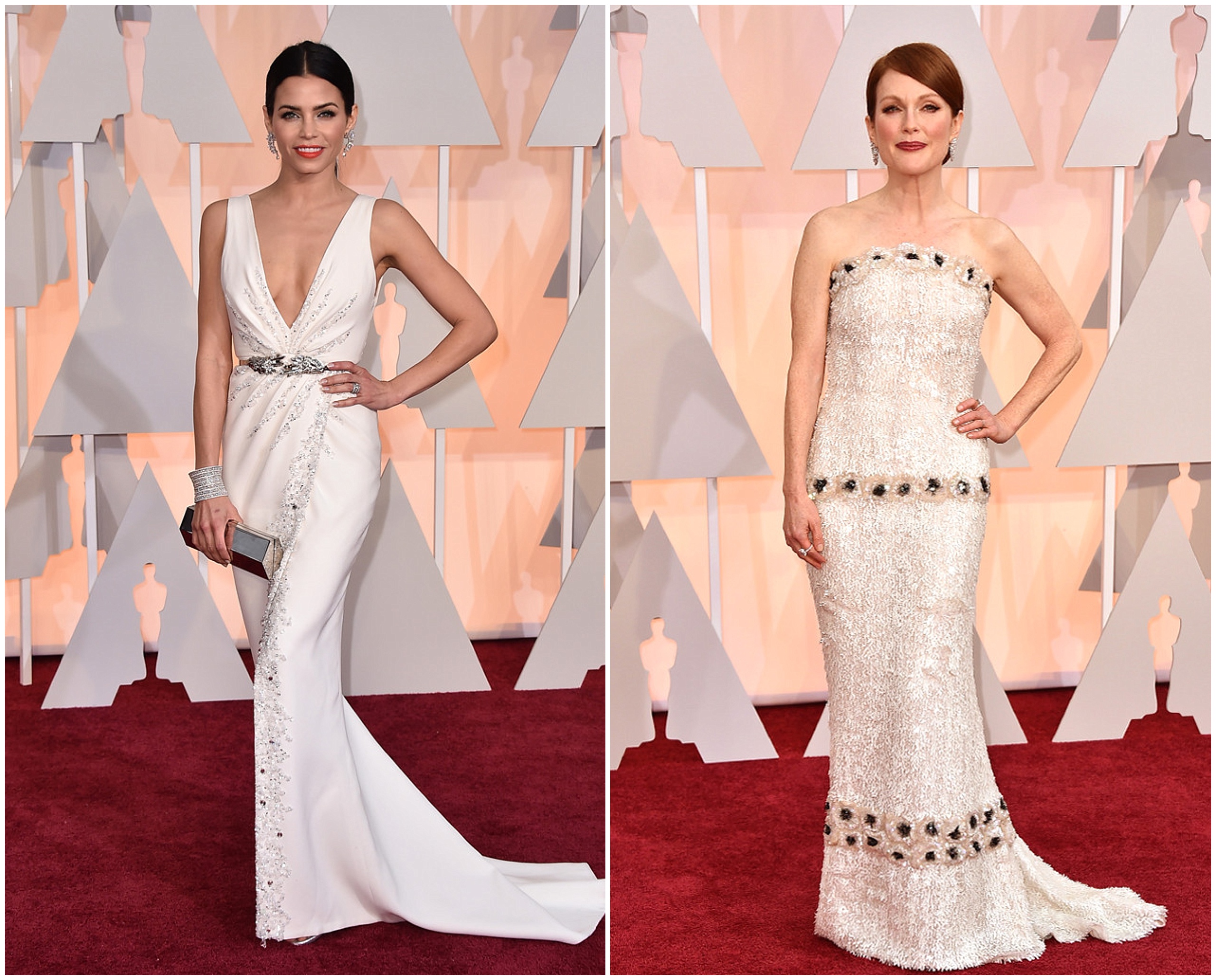 If you are looking for something a little more subtle, then take a leaf from Jenna Dewan-Tatum on the left who looked stunning in Zuhair Murad which featured sprinklings of embellishments throughout. For a more vintage look check out Best Actress winner Julianne Moore’s style which paid homage to the avant garde in a Chanel Haute Couture which featured multiple rows of jeweled flowers mixed with intricate beading, and apparently took 987 hours of work and no less than 27 people to complete. Wow!